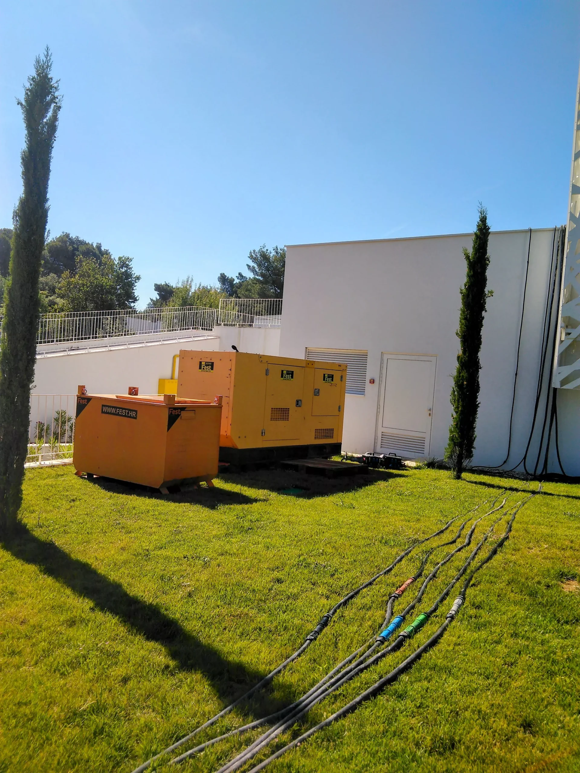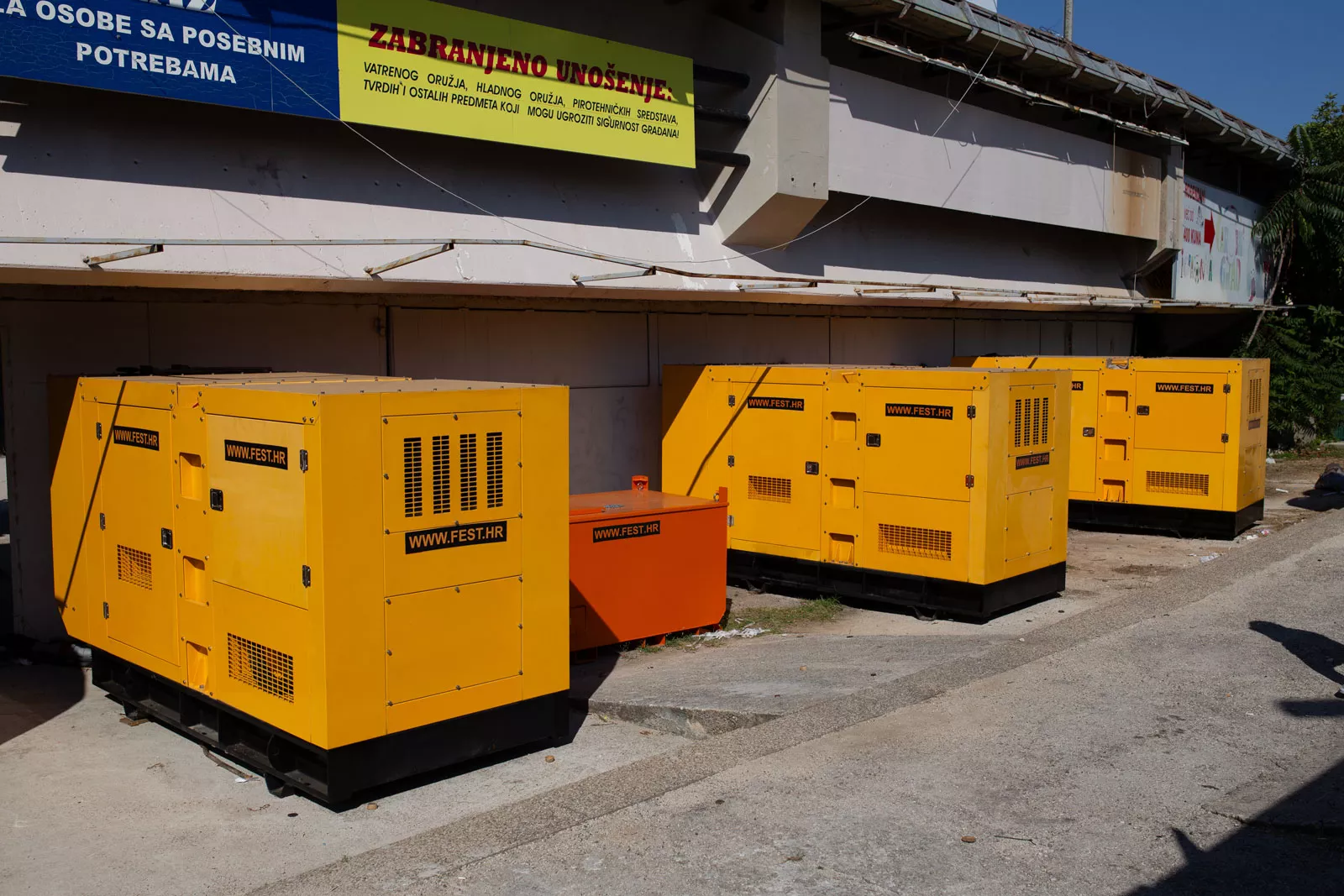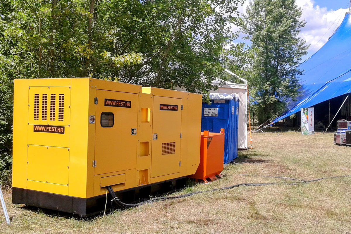 Uz fizičku infrastrukturu, FEST je razvio i snažan segment privremenog napajanja – jer bez stabilne struje nema ozbiljne produkcije, niti ozbiljnog privremenog industrijskog rješenja.