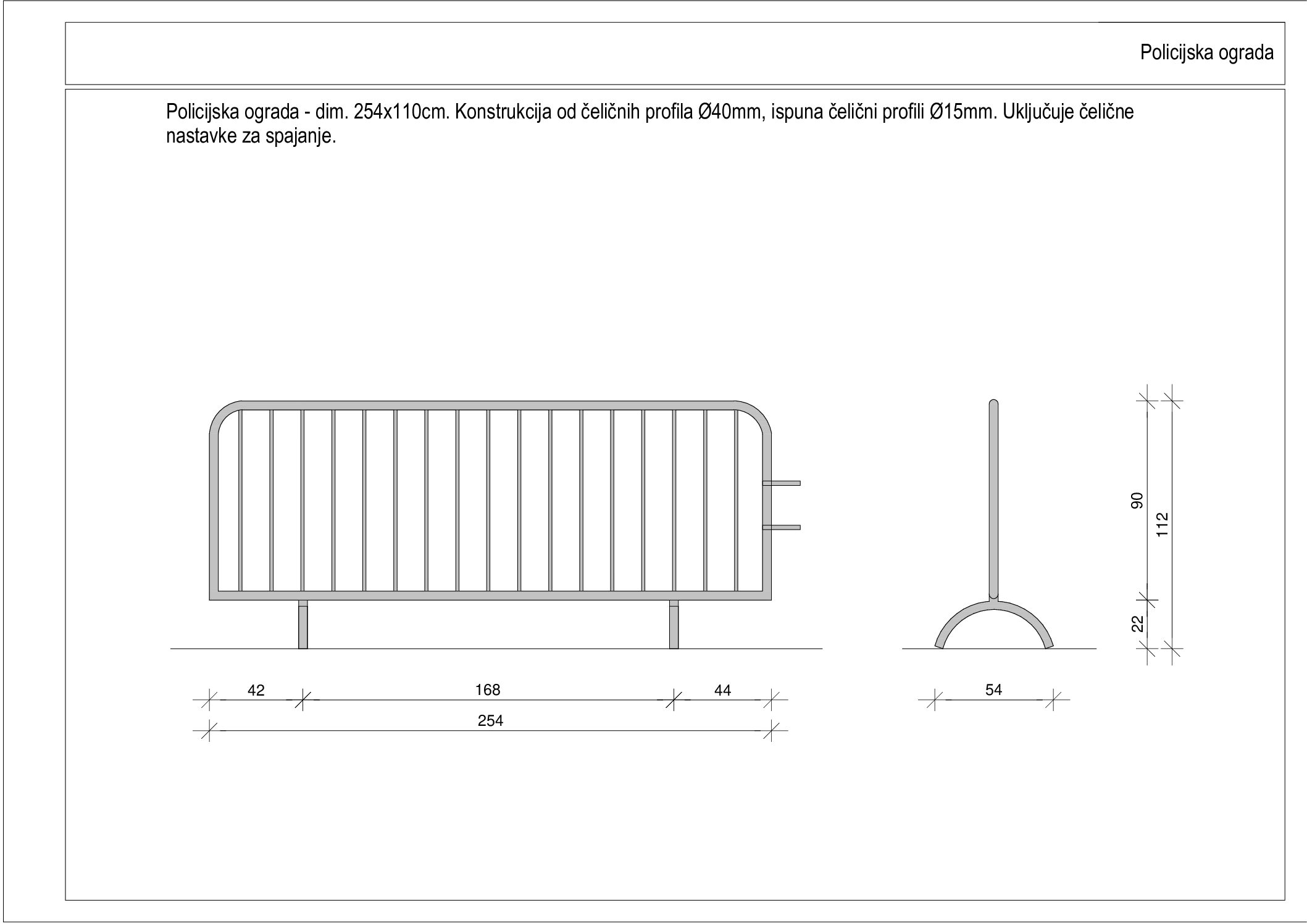 Pojam policijska ograda odnosi se na mobilne sustave koji se koriste za privremeno ograđivanje, usmjeravanje mase ili osiguravanje događanja, izrađena je od pocinčanog čelika radi otpornosti na koroziju.